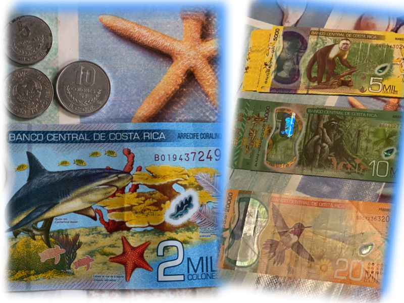 Try to use the local currency, the Colón, as much as possible to avoid being ripped off with varying exchange rates. The Costa Rican money is so colourful full of animals portrayed. US$ dollars and major credit cards are widely accepted, though.