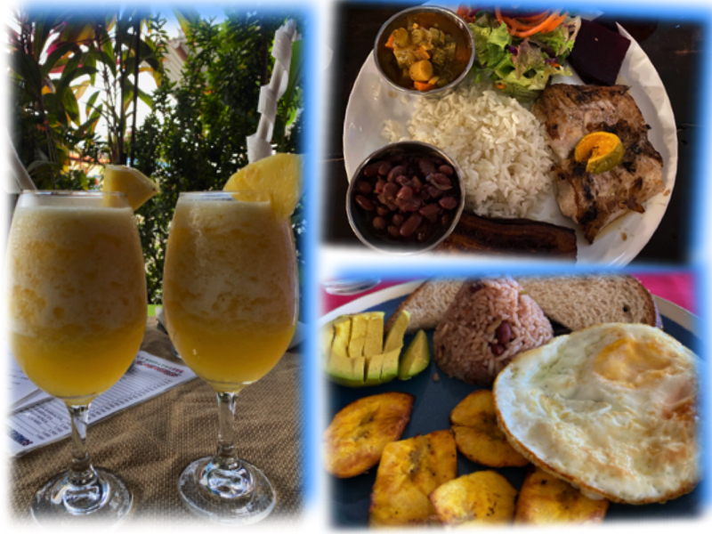 Costa Rican food is tasty but not spicy. The national dish is Gallo Pinto including black beans, rice with onions and cilantro. This meal is traditionally eaten at breakfast, with fried eggs or scrambled eggs, tortillas and sour cream. A Casado is a bowl of rice, red beans or black, and a choice of meat, chicken or fish and vegetables or salad.