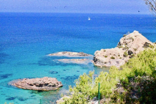 Our tour was called Go east and started and ended in Es Figueral.A tour of rocky coast and picturesque bays all the way to Cala Sol d’en Serra and afterwards, a tour of Ibiza’s pretty interior.