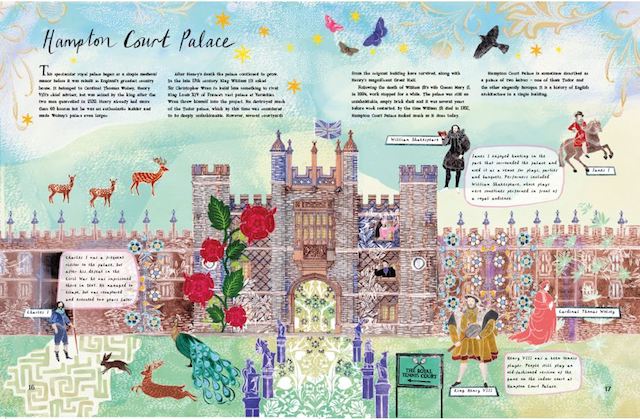 Each building has its own dedicated spread filled with historical facts, important figures from that building’s past and amazing detailed illustrations that bring key elements about the building to life. Through the pages you literally watch Buckingham Palace transform from a large country house into an opulent palace. You can have fun with your children spotting Henry VIII playing tennis on the lawn of Hampton Court Palace, or getting lost in the Palm House at Kew, London’s very own tropical rainforest.