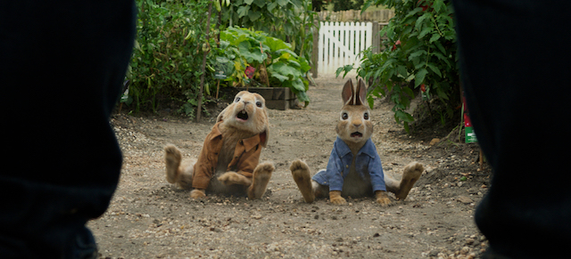 Peter Rabbit (James Corden) with Mr. McGregor (Domhnall Gleeson)