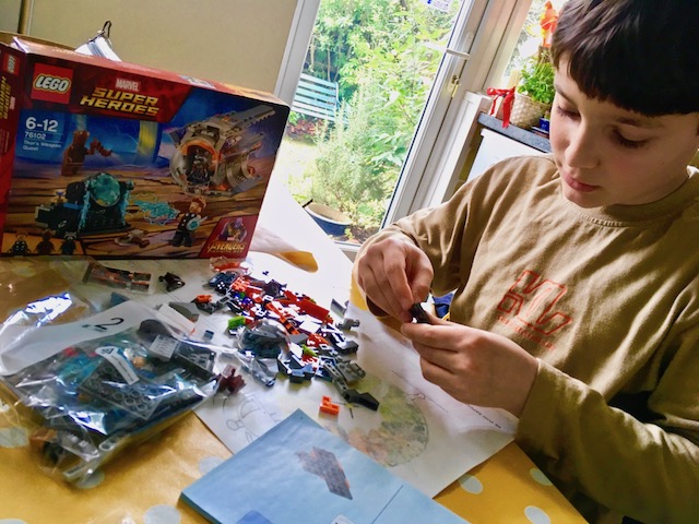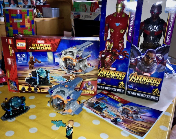 Diego has been enjoying playing with a LEGO kit based on the Avengers Infinity War movie even without watching the film. The little LEGO figures of the superheroes are so cute: in this pack there are Rocket, Thor and Groot and Thor.