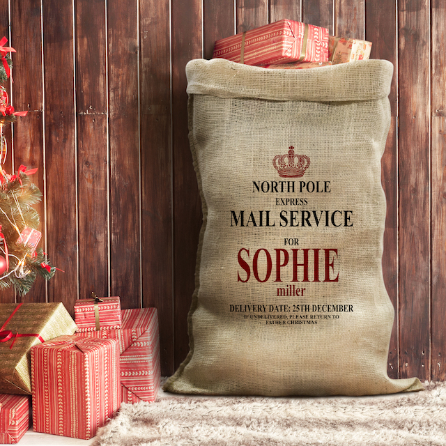 Personalised Christmas Hessian Sack – North Pole Express £14.99 (current offer price £7.54)