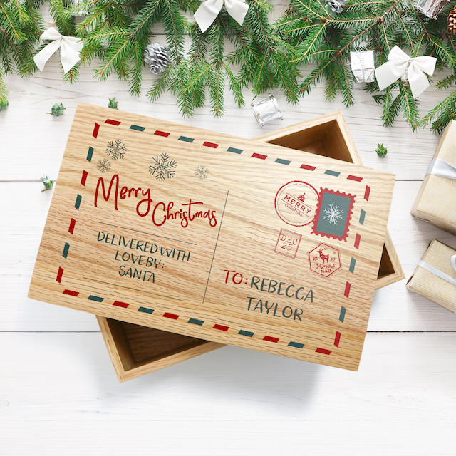 Personalised Large Oak Keepsake Box – Christmas Postcard £29.50 (current offer price £19.99)