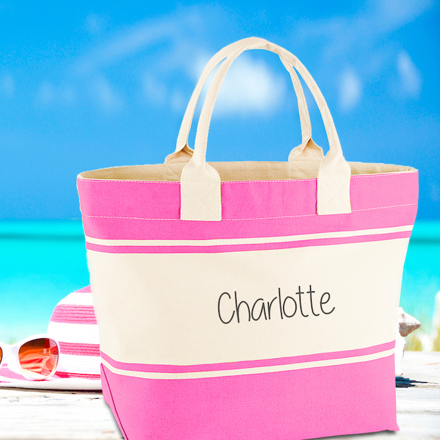 This brightly coloured canvas bag can be personalised with a name or short message. I have chosen this because its quality fabric makes it a gorgeous gift. The bag is perfect for a winter sun break, summer holidays or even everyday use as a tote. It can be carried over the shoulder, or in hand and measures approximately W:53, D:19cm, H:59cm including handles.