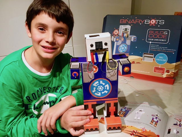 My 12 year old son Diego is a young nerd who likes to makes things out of cardboard and technology. This Winter he had the opportunity to review Dimm™the new smart toy robot who teaches kids how to code. The Dimm™kit costs £39.99 inc. VAT and comes with Dimm the robot, fun sensors and a brand new BBC micro:bit computer.