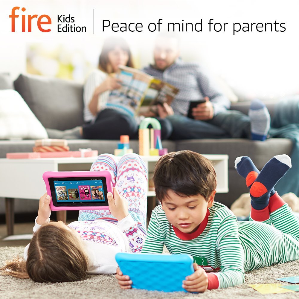 The new Amazon Fire for Kids comes with electronic Discussion Cards that let parents share in their kids’ digital experience through short summaries of the books, videos, educational apps and games their kids are using.