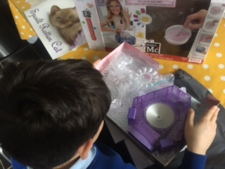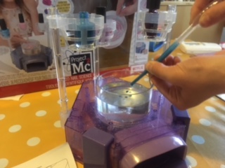 During British Science week little scientist Diego was very busy learning new chemistry principles using a nail science kit, that has been brought out by the makers of Project Mc2 dolls aimed at girls. The pack is really good fun even for boys who have an interest in science and Diego proved to get on with this cosmetic chemistry experiment called hydrographic printing just fine although he was not interested in the end product, a decorative nail varnish.