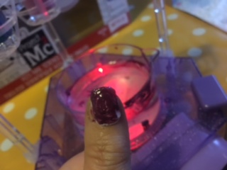 The various coloured lights under the beaker make the nail varnishes look very different fr0m the original.