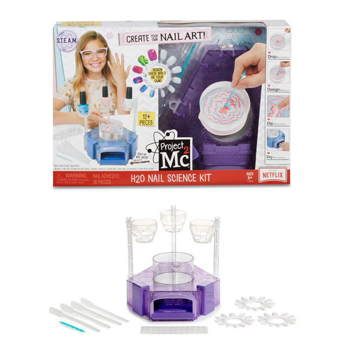 Take a look at how little scientists has used the Project Mc2 H2O Nail Science Lab kit to create one-of-a-kind nail designs by using a scientific process called hydrographic printing.