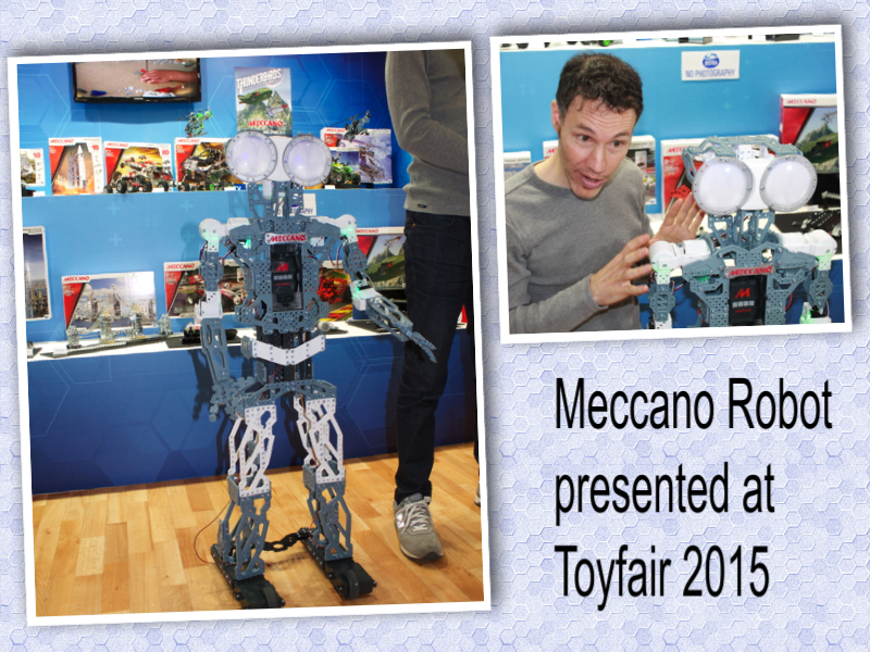toy fair Meccano Robot 2015 collageFrom this year robots are really dominating the toys’ market. The best robot at Toy Fair 2015 was most definitely the Meccano fully-moving robot. Check out in this video how it moves and interacts with people. The technology is simply fascinating and now accessible to children. It makes you want to be a child again.