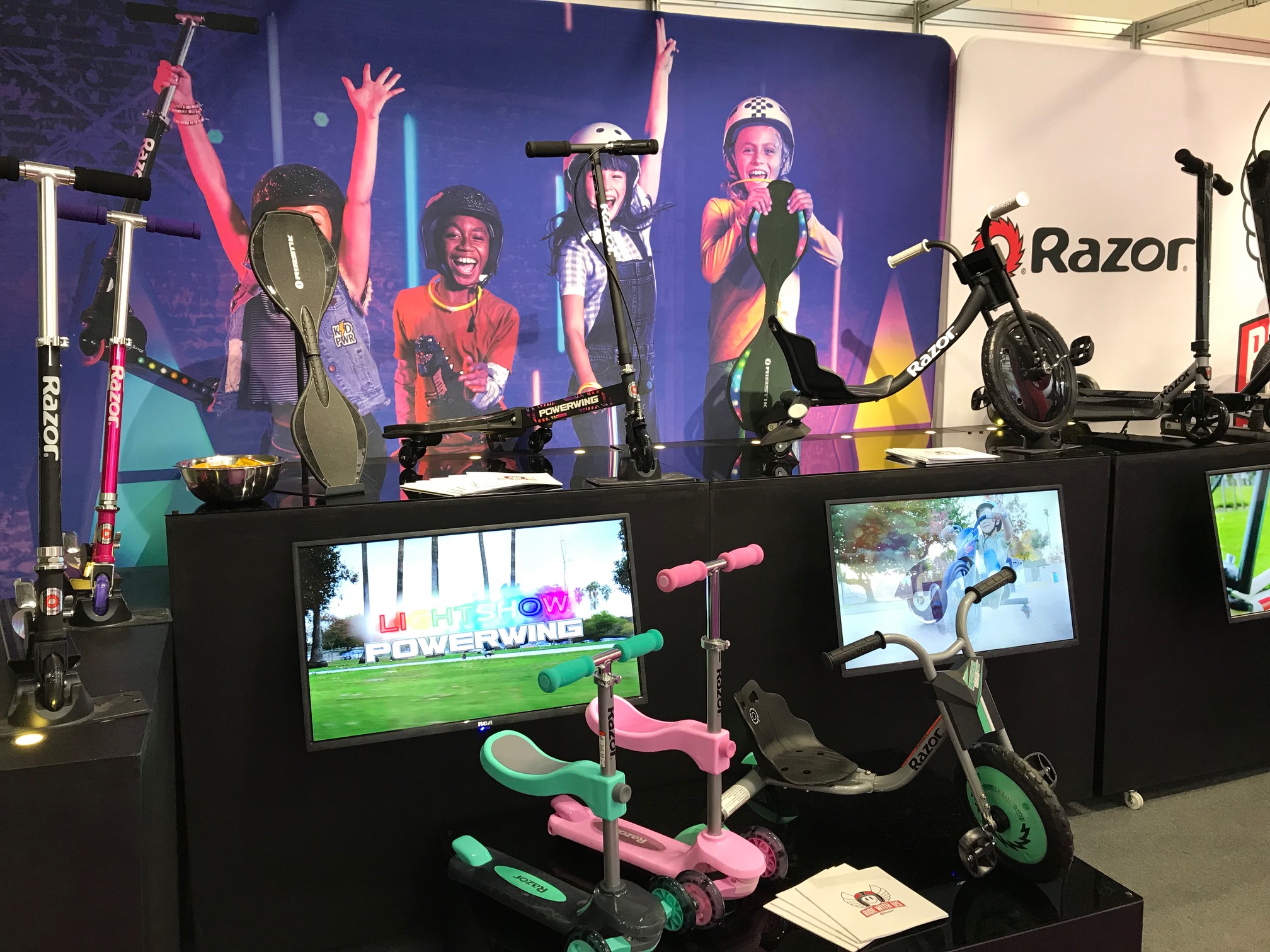 Razor had a large choice of zippy wheeled objects for jazzing up the sometimes painful process of getting to school or round the shops, including scooters of all sizes, skateboards, tricycles and bikes.