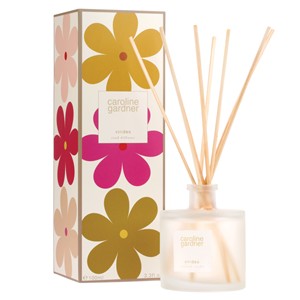 Beautiful reed diffuser in the lovely scent of virides, a fresh delicate scent of cut grass, pear and rose with a hint of jasmine which pervades the room and leaves a calming smell which is ideal for a small office environment. The scent diffused through hand cut and dried natural stripped reeds, includes a unique blend of fragrance oils and purified gm free alcohol. The glass vessels used are made in France. The virides diffuser is supplied in a caroline gardner designed diffuser box, with the big daisy print which makes it a unique Mother’s Day gift. RRP £26.00 www.carolinegardner.com