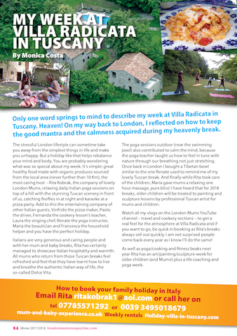 Take a look at London Mums’ editor Monica Costa’s article about her holiday at Villa Radicata last year! It was nice to have her and other mums with babies.