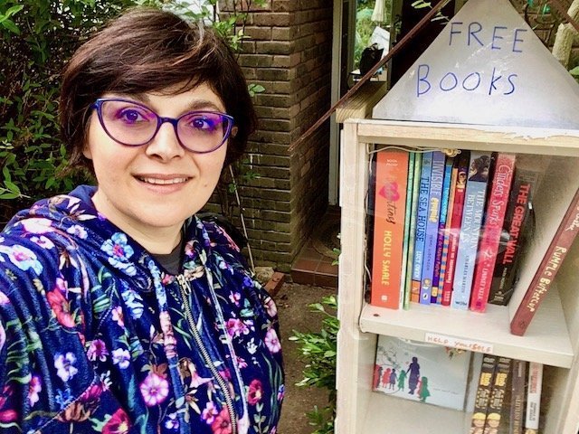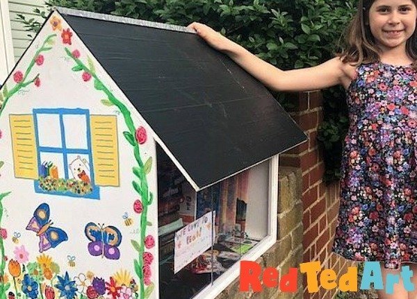 My friend Maggy Woodley of Red Ted Art and her daughter created this amazing little house as a free library