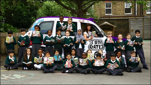 To celebrate the publication of the new book Liz Pichon recently run Scholastic’s big book giveaway ‘100 books for 100 Schools’ in London visiting schools and giving away books for their libraries in a super furry Tom Gates taxi. She is amazing, isn’t she?! And I am so proud of being able to interview her. If you missed my interview read it here and in the London Mums magazine.