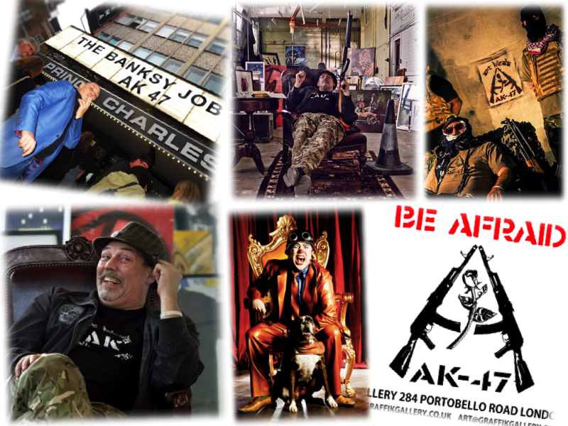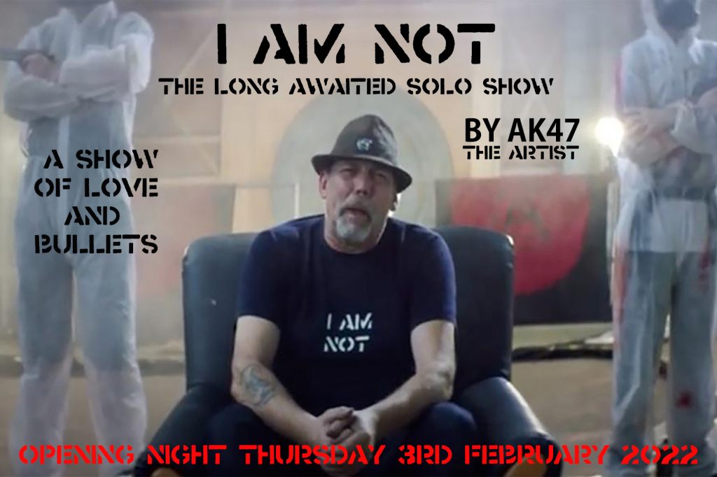 The exhibition will also showcase CANVAS WORKS using AK47’s infamous slogans including “I AM NOT, TAKE THE PISS” & “BE AFRAID”.