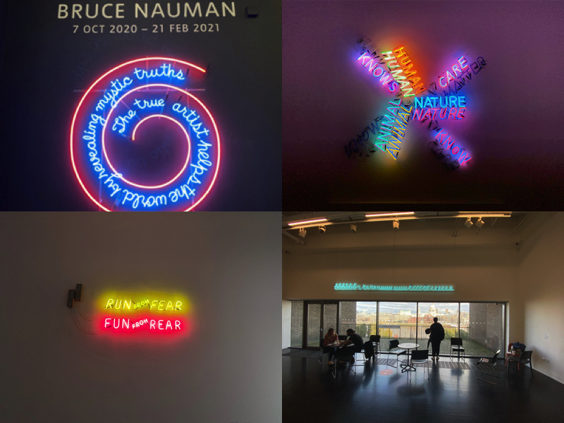 It was great to be able to go back to the Tate Modern this week. Last time I visited the gallery was for an exclusive preview of Andy Warhol‘s exhibition, back in March before lockdown started. The latest retrospective to run between 7 OCTOBER 2020 and 21 FEBRUARY 2021 is Bruce Nauman’s first major exhibition in London in more than 20 years. It allows visitors to engage with the artist’s universe through immersive installations with a strong emphasis on sound and moving image, as well as poetic sculptures and neon pieces.