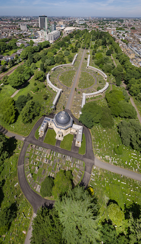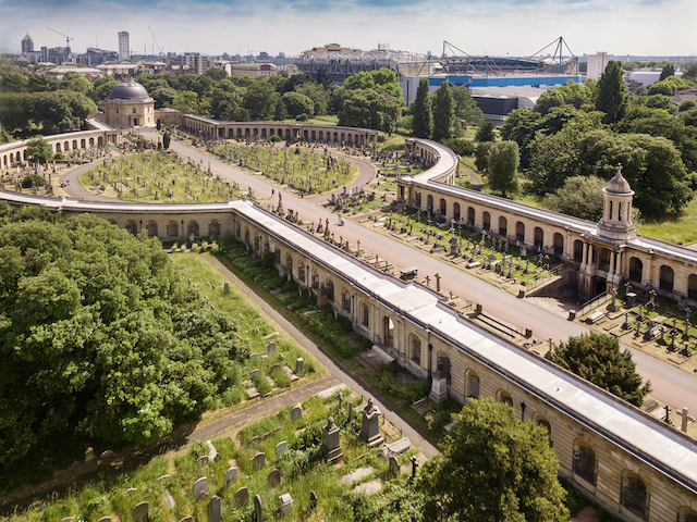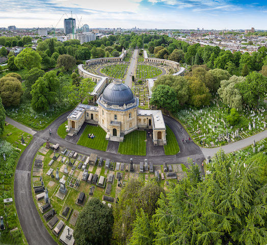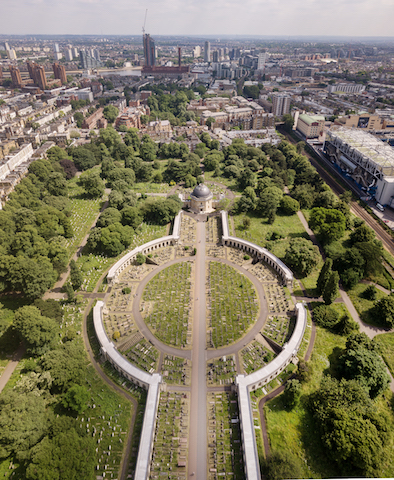 The 39-acre Grade I registered garden cemetery* is one of the Magnificent Seven cemeteries created outside central London in the 1830s-1840s and is a Site of Nature Conservation Interest and there are many unique, listed monuments and architecture. It contains 35,000 monuments.