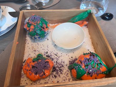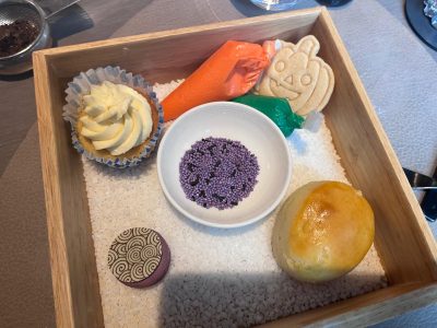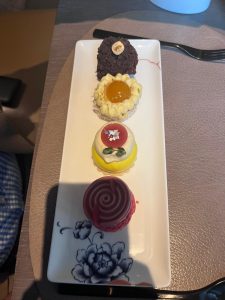This afternoon tea offered a twist, too. We were greeted with a beautifully spiced amuse-bouche that set the tone for the exquisite courses to follow. My daughter’s sandwiches were thoughtfully shaped to capture her interest, making her healthier choices appealing. At several points throughout, we were offered extra treats, adding to the charm and generosity of the experience.