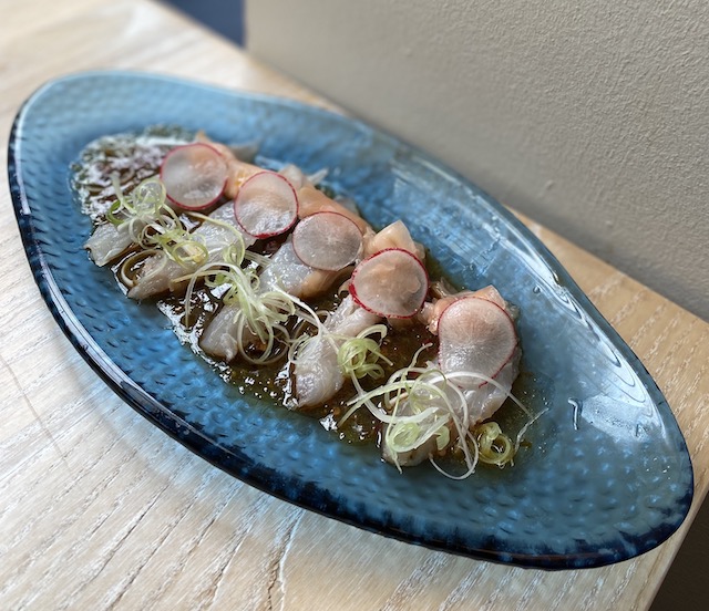 Lime barracuda, black bean sauce, pickled ginger and spring onions (£12): White fish (I was curious to taste the barracuda which I only knew from snorkelling in Mexico) combined with fresh spicy Caribbean sauce with a strong personality. All flavours and fragrances are distinctively recognisable.