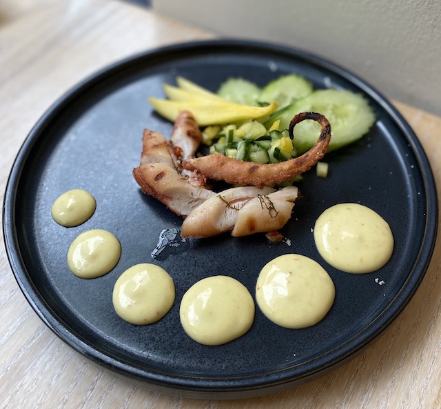 Grilled octopus, mango, cucumber, mint, scotch bonnet emulsion (£17): crispy octopus that I ate with my eyes closed and almost felt the smell of the Caribbean ocean.