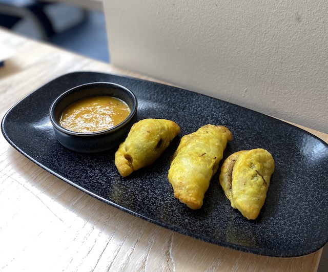 Oxtail patties, Bajan hot sauce (£7): Very spicy, brazed beef meet (oxtail), very tender, wrapped up in a pouch of pastry. Spiced up with Bajan hot sauce and mustard.