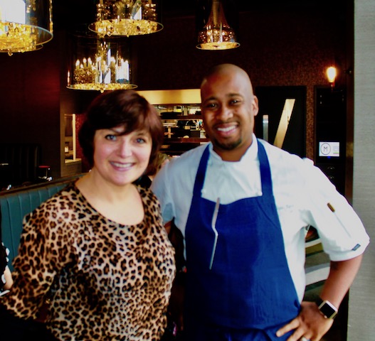 What I loved about being at M Bar and Grill in Twickenham was not just the minimalistic gothic decor and Michael Reid ‘s creative new menu but the fact that there was also a dog, in fact a very special dog, M’s very own Brandy Doodle, the wonderful mascot, Hudson sitting there too. The restaurant is clearly dog-friendly!!