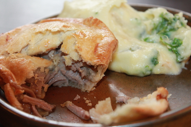 The beef dripping pastry with the Brie Colcannon potato and the scorched garlic greens is a great combination of seasonal flavours.