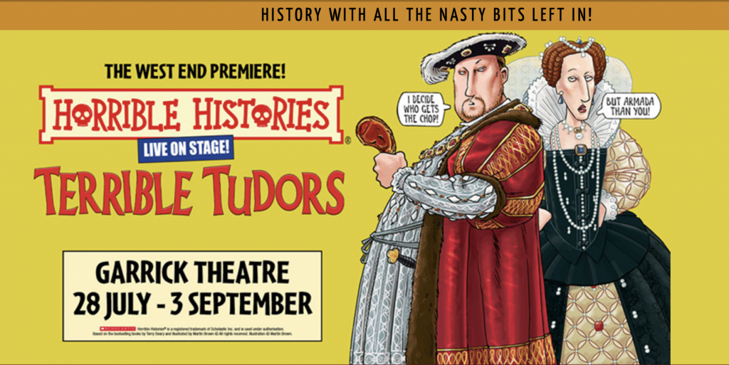 On Saturday 6th of August a family from London Mums Magazine was invited to the Garrick Theatre to watch Horrible Histories: Terrible Tudors.