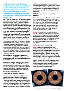 Simon: I missed going to the pub down the road and have a beer and a chat or just sit around other people. It’s the simplest things, at the end of the day, that I missed the most. I got quite depressed one week and I didn’t see anyone on the screen either. I was getting on with work at my house and I was always busy, but it’s just the not being near other people that upset me. It’s not really natural. I’ve missed the shows and live concerts.