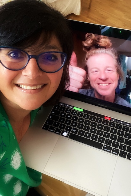 Monica Costa and Simon Bartholomew chatting on Zoom during the pandemic