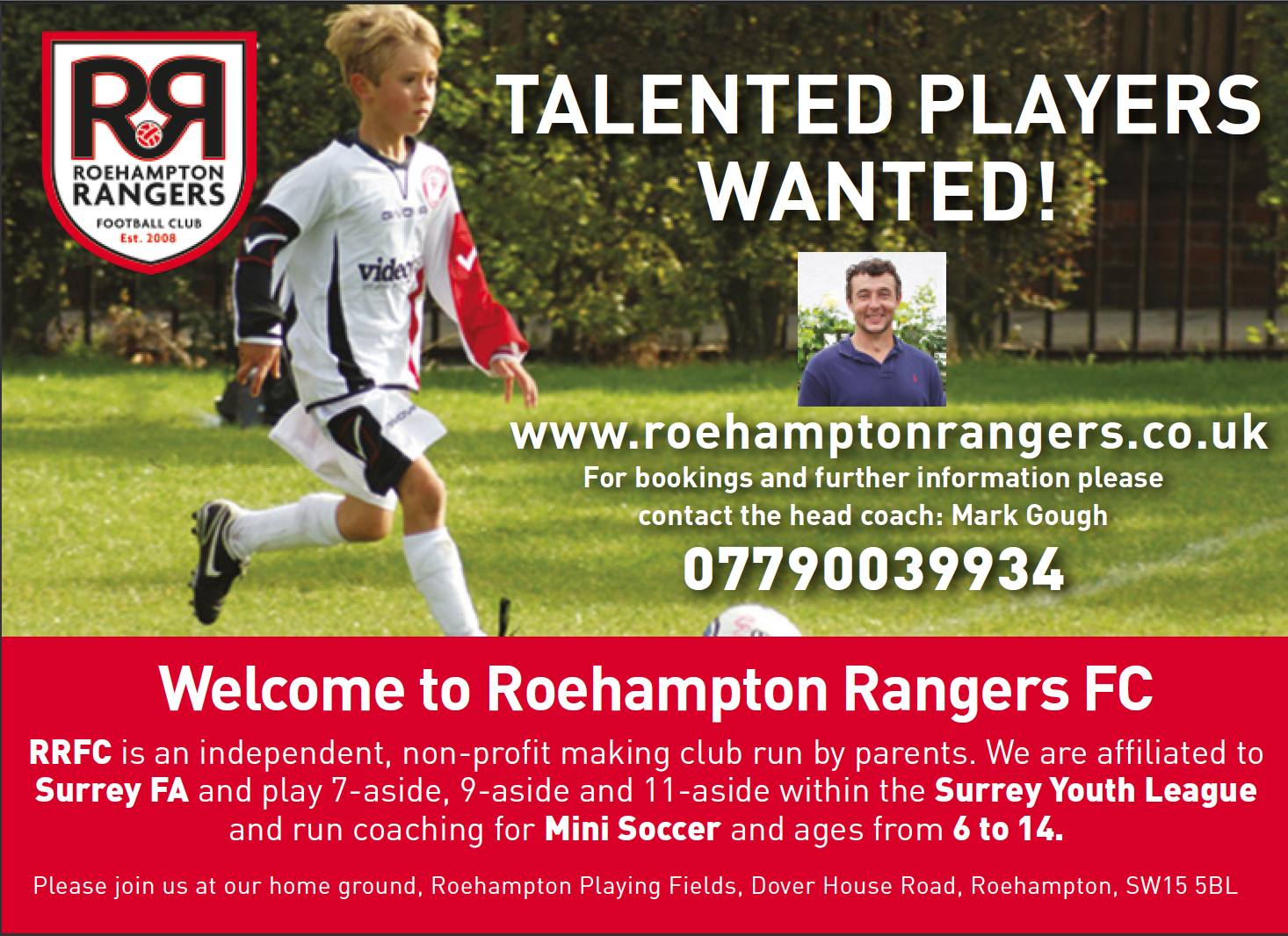 Roehampton Rangers Football Club (RRFC) was founded in 2008. It has established London kids’ football teams in all age groups. There are currently 4 squads of boys covering the age groups of Under 11 to Under 15. Between all different squads there are over 70 boys registered with the club.